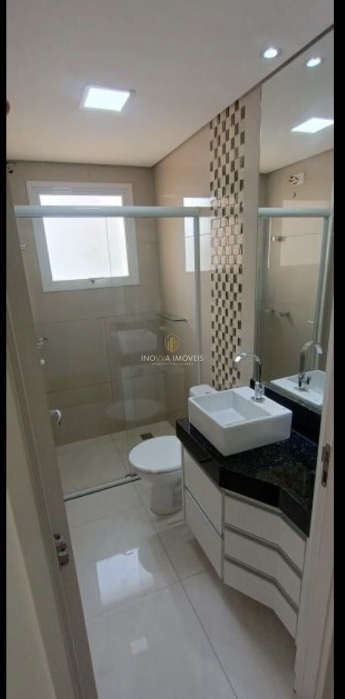 Banheiro com box, cozinha com armários planejados, porcelanato em todo apartamento, bloco com 2 elevadores, playground, piscina, área de churrasqueira, sala de cinema.