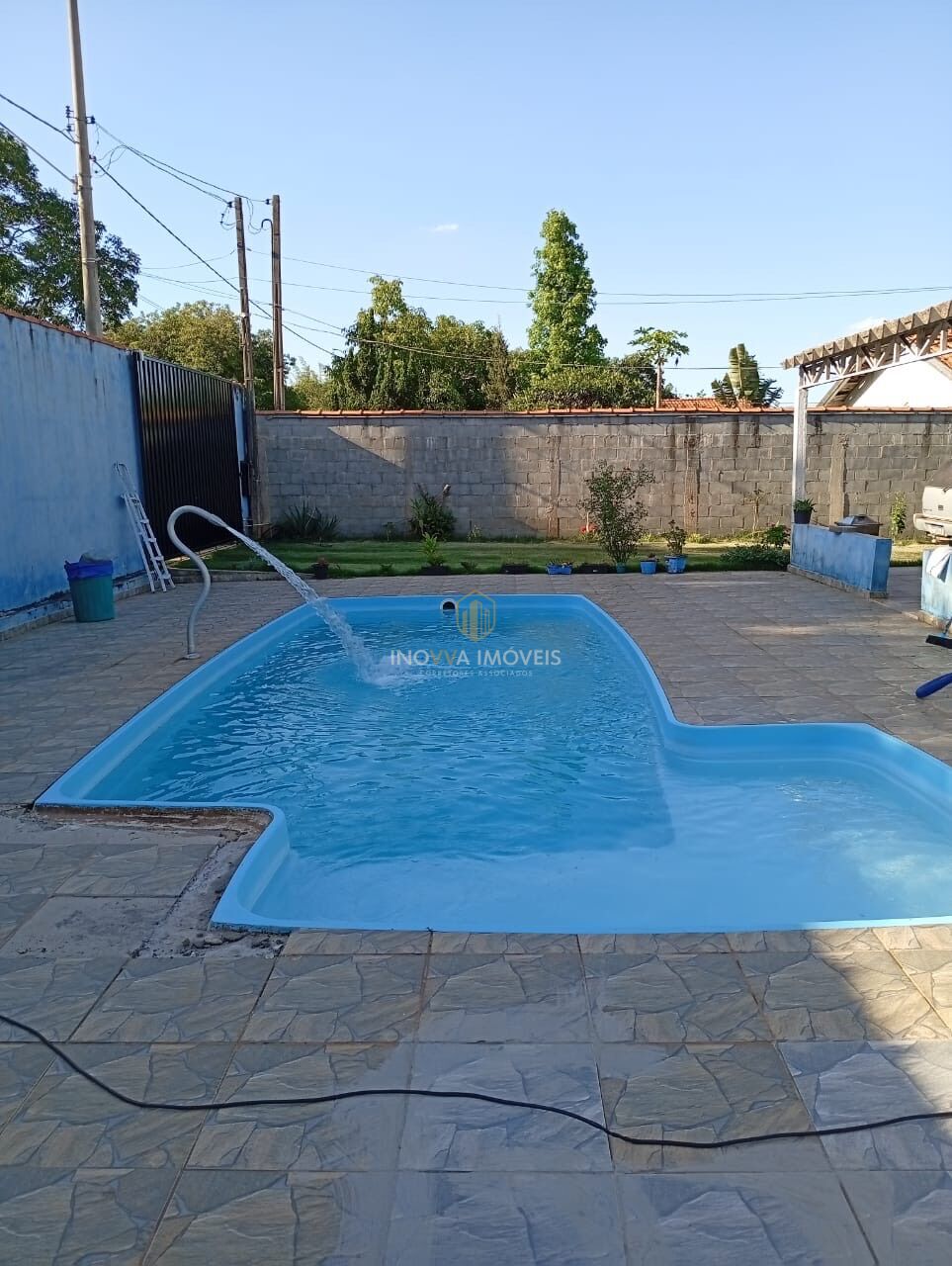 03 quartos, churrasqueira, fogão a lenha, lavanderia, 2 banheiros, piscina grande.